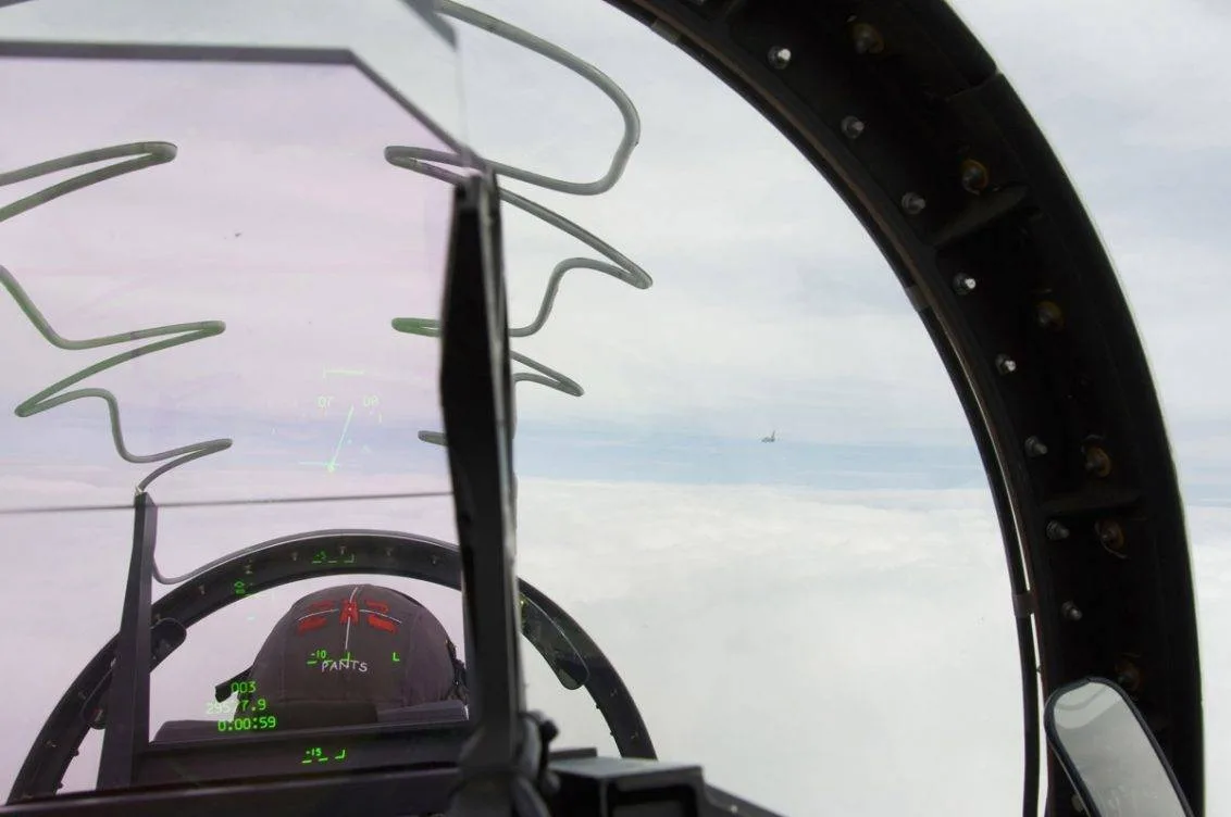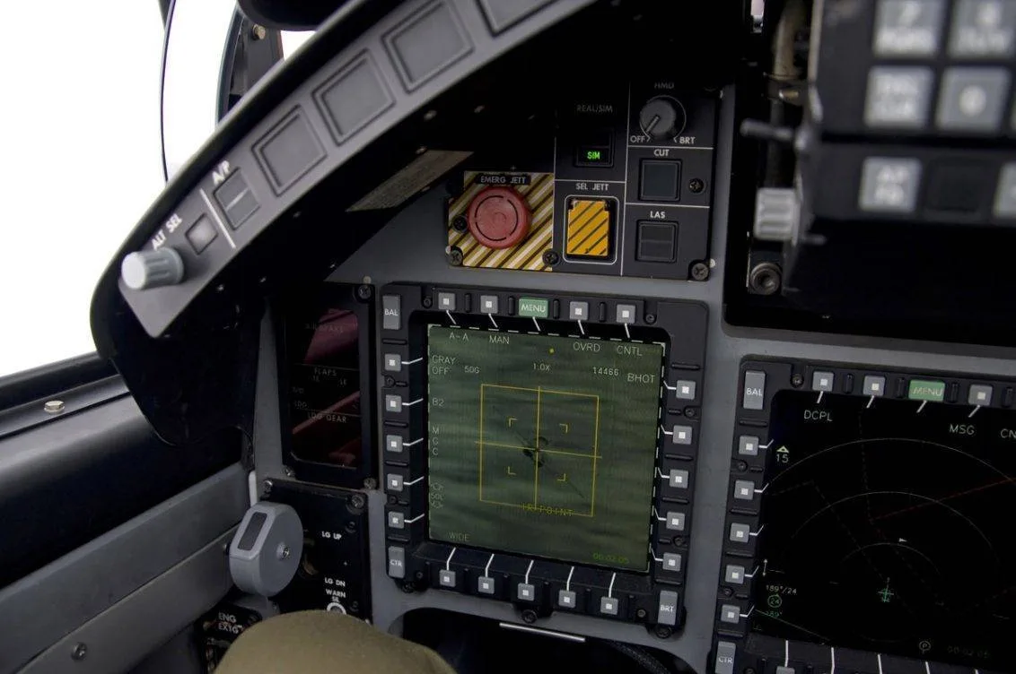 “Bloqueo de radar en Cobra 1”, escucho la llamada del piloto desde el asiento delantero. Y sí, puedo verlo en el HUD y en la pantalla entre mis rodillas. Pero lo cierto es que en realidad no llevamos misiles guiados por radar o aire-aire. Segundos más tarde y para mi asombro, veo a Cobra 1 en una imagen térmica de un pod Litening en la pantalla izquierda. La imagen refleja mi vista real de Cobra 1 en nuestra posición hacia las 13 horas. Pero de nuevo, la cosa es que en realidad no llevamos un pod Litening. Bienvenido al M-346 Master Advanced Jet Trainer y su mundo de la simulación.