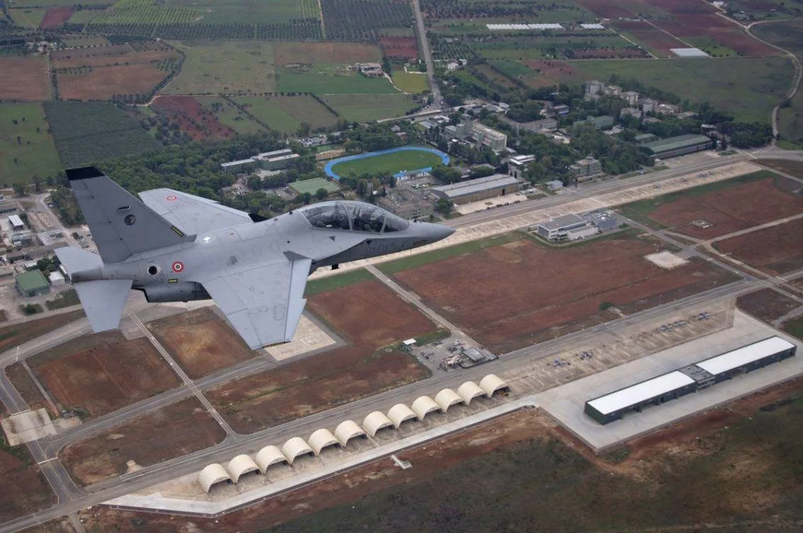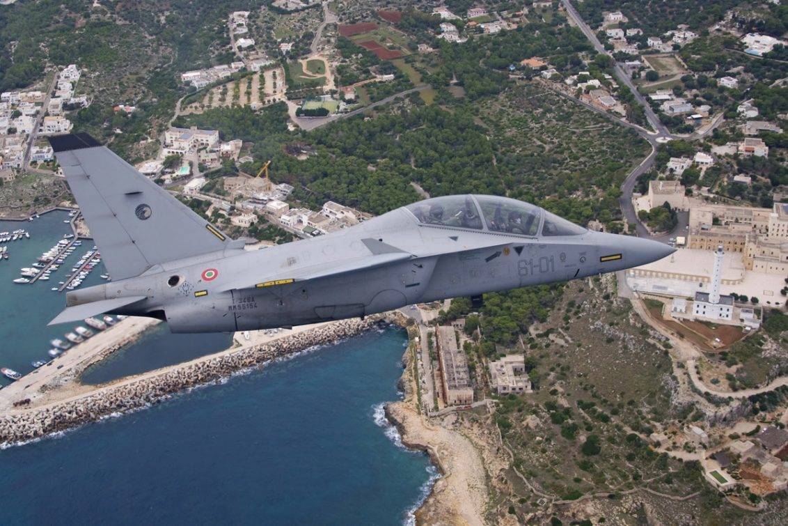Sólo 30 minutos antes, Cobra 1 y Cobra 2 están alineados en la pista 14 en la base aérea de Lecce Galatina en el sur de Italia. El aeródromo militar alberga al 61ª Ala de la Fuerza Aérea Italiana y los siete M-346 Master Advanced Jet Trainers ahora en uso. Dos de ellos están ahora programados para una salida de familiarización en el área, conmigo en el asiento trasero del Cobra 2. Volando el Cobra 1 esta el comandante del 212 Gruppo, el escuadrón que desde 2014 es el único operador de la M-346 en la Fuerza Aerea.