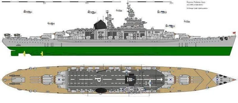 Sin embargo, los diseños de los buques han dado lugar a algunos escenarios interesantes de “what if”. En 1937, la URSS contrató a ingenieros estadounidenses para desarrollar un diseño híbrido de portaaviones y acorazado, entre ellos un proyecto que se conocería como Proyecto 10581. El híbrido, creado por la firma de diseño de buques Gibbs & Cox de Nueva York, estaba armado con 8 cañones pesados de 457 mm o 12 de 406 mm, 28 cañones de 127 mm y 32 de 28 mm, y un contingente de 36 aviones lanzables desde la cubierta, además de 4 hidroaviones. El barco debía estar equipado con dos sistemas de catapulta, y equipado con una coraza de entre 197 mm y 330 mm de espesor. Los esfuerzos de diseño adicionales resultaron infructuosos, el buque se consideró poco práctico, y la Unión Soviética en última instancia renunció a la idea de un híbrido portaaviones-acorazado.