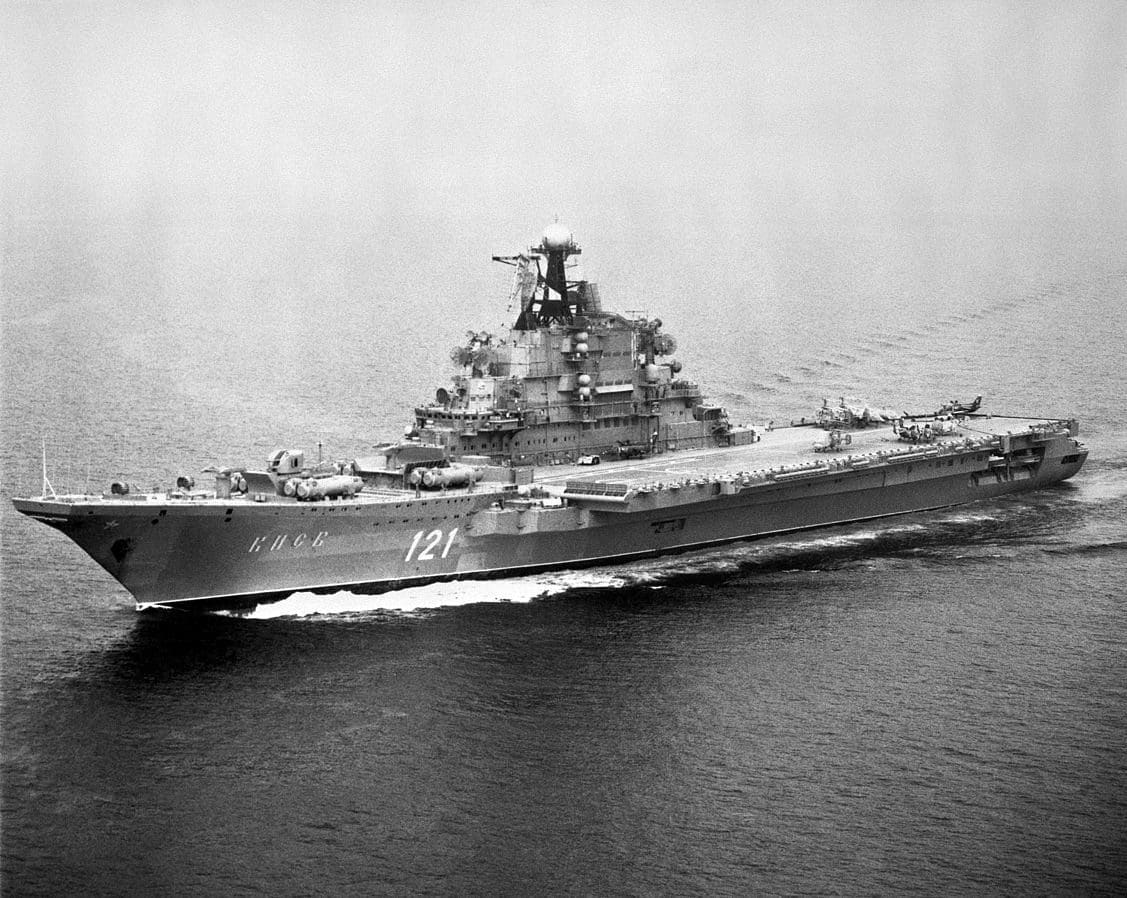 El primer barco de la clase, el Kiev, fue depositado en los astilleros de Nikolayev en 1970, y entró en servicio en la Flota del Norte en 1975. El buque de 45.000 toneladas, 273 m de eslora y capaz de velocidades de hasta 32 nudos, tenía una tripulación de 1.200-1.600 hombres, y podría transportar hasta 30 aviones, incluyendo una docena de aviones de combate Yak-38 VTOL, diseñados específicamente para el uso desde portaaviones, junto con 16 a 18 helicópteros Ka-25 o Ka-27/29.
