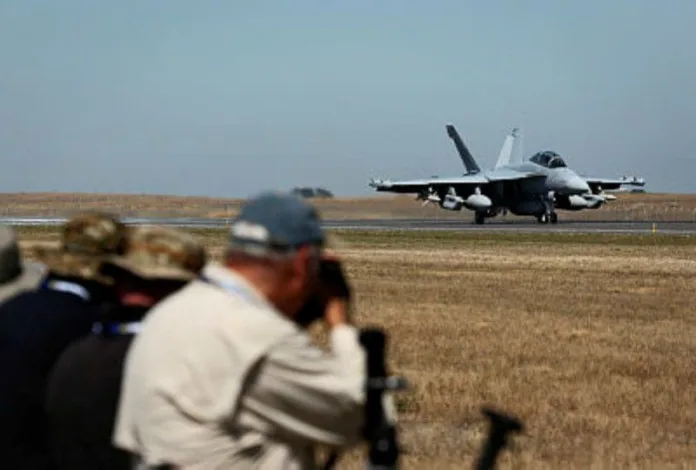 Volando al Australian Airshow Internacional en Avalon desde la Estación Aérea Naval de Whidbey Island en los Estados Unidos, los Growlers son una potente y tecnológicamente avanzada nueva capacidad para la Fuerza Australiana de Defensa.