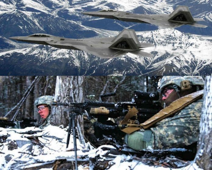 Alaska es el hogar de dos puestos del Ejército; dos bases de la Fuerza Aérea; y de la Base Conjunta Elmendorf-Richardson que alberga unidades del Ejército y de la Fuerza Aérea. También se encuentran la Guardia Nacional de Alaska y los miembros de la Guardia Costera. Actualmente no hay base de la Marina en Alaska.
