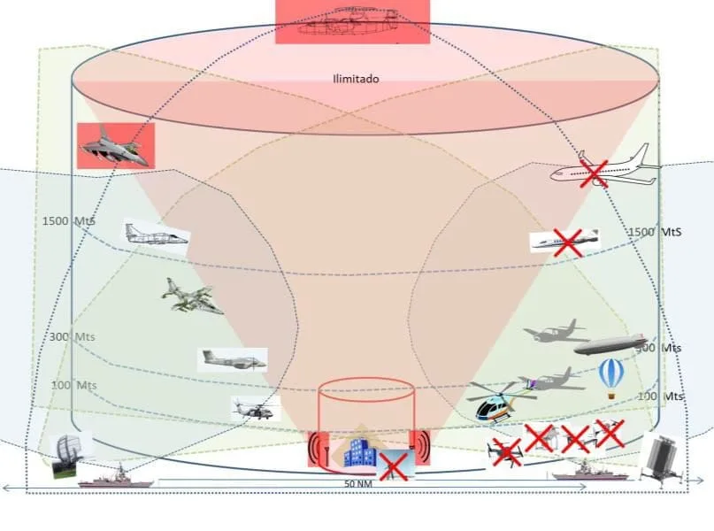 • En general se puede prever el empleo de Radares adicionales a los que ya se tienen en el área, pudiendo se llegar de acuerdo con la complejidad de la zona, a contar hasta con tres (3) radares de defensa o DOS (2) radares adicionales si el área donde se realiza el evento ya posee uno, esto colabora a optimizar la capacidad de detección de posibles Tránsitos Aéreos No regulares y da redundancia al sistema ante eventos de interrupción no deseada en el área.