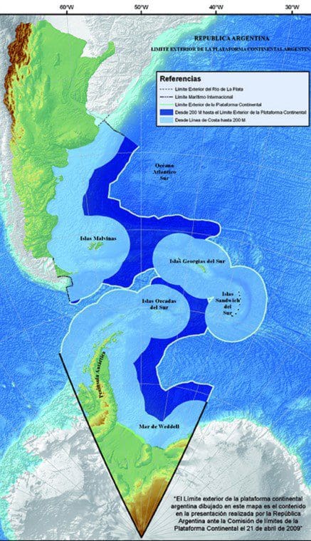 Como aspecto saliente, el reconocimiento parcial de la extensión de la plataforma continental argentina hecho por la Comisión de Límites de la Plataforma Continental deja perfectamente clara frente a la comunidad internacional la disputa de soberanía en derredor de las jurisdicciones de las Is. Malvinas, Georgias del Sur y Sandwich del Sur.