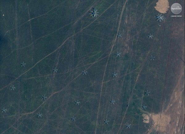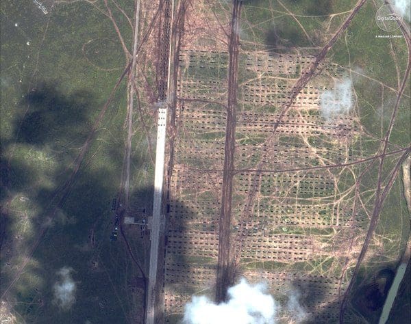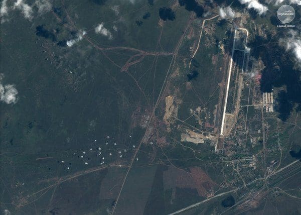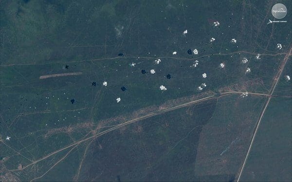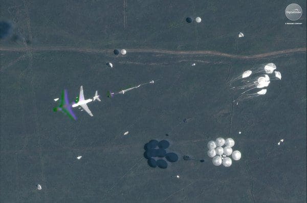 Las siguientes fotos fueron tomadas con los satélites de imagen de alta resolución de DigitalGlobe (GeoEye-1 y WorldView-3) sobre el área de entrenamiento de Tsugol en el este de Rusia. Las imágenes capturaron el lanzamiento de paracaidistas, aviones Il-76 Candid que lanzaron vehículos de combate aerotransportados, equipos y personal con paracaídas, según DigitalGlobe.
