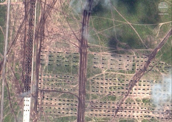 Las imágenes también revelan la escala y el alcance del ejercicio, con miles de vehículos blindados, artillería y equipo ensamblados en formación realizando un desfile, mientras que el presidente ruso Vladimir Putin, presenciaba presuntamente, el evento.