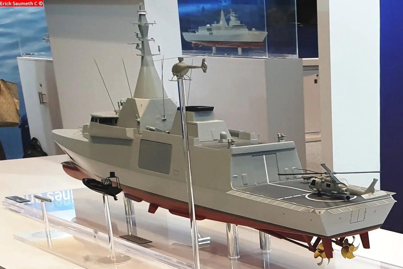 El otro producto que estamos mostrando es lo que llamamos fragata o corveta, dependiendo un poco de los países, que se denomina Gowind, de la familia homónima Gowind, que ha sido un gran éxito para nosotros ya que lo hemos vendido en Egipto y Malasia.