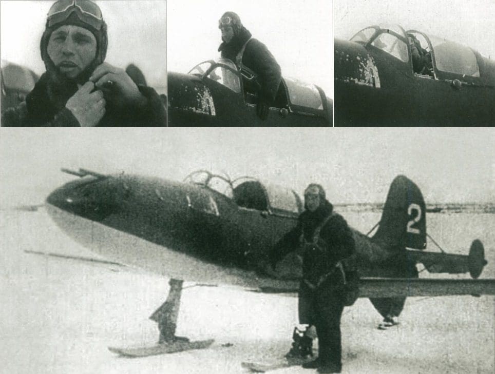 Inferior: Grigori Bakhchivandzhe posando junto al BI Nro 2 antes de un vuelo.