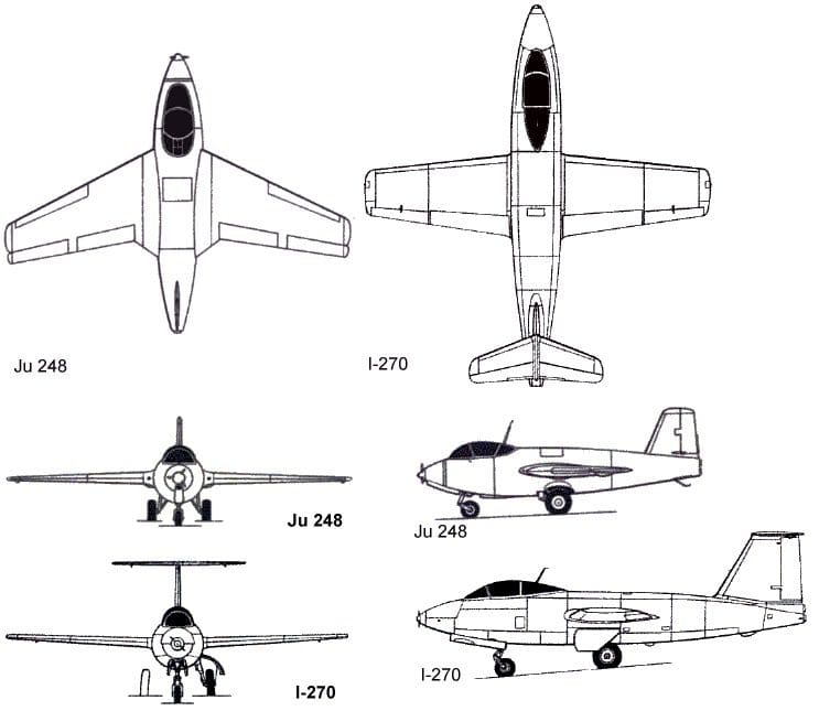 En general similar en diseño al Ju-248, excepto por la prudente adición de estabilizador horizontal montado al tope de la deriva, el I-270 era de construcción enteramente metálica. El modelo mostraba claramente las líneas del Ju-248, o Me-263, porque el equipo de Junkers en Dessau había formado parte del botín tomado por los rusos en 1945 y había participado en el proyecto.