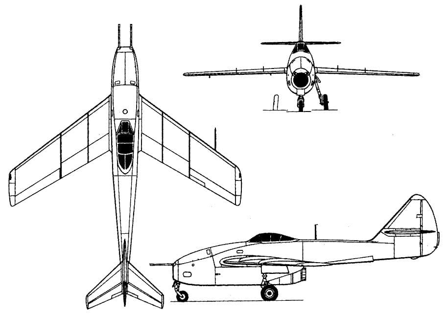 Tipo: Caza a reacción monoplaza monomotor de primera generación