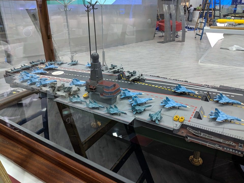 La Oficina de Diseño de Nevskoye (parte de la Corporación Constructora de Buques Unida de Rusia) dio a conocer el nuevo portaaviones de propulsión nuclear (CVN) Lamantin del Proyecto 11430E. Su maqueta se mostró en el stand de exhibición de la oficina de diseño en la exhibición de defensa marítima internacional de San Petersburgo, que se celebró del 10 al 14 de julio de este año.