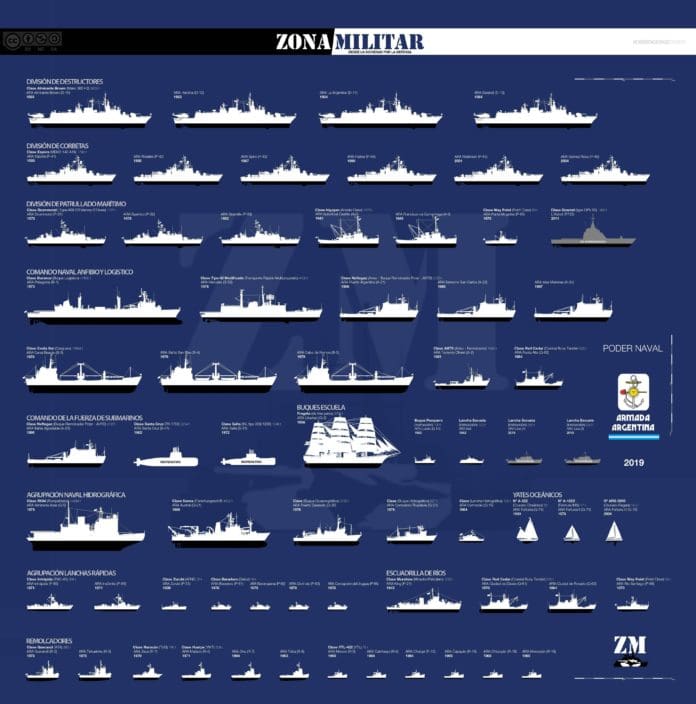 La fuerza, que promedia casi los 50 años entre sus diferentes cascos se observa vetusta frente a las vecinas, las cuales han avanzado en nuevas incorporaciones ademas de modernizaciones y sistematizaciones con misiles y comando y control de ultima tecnologia. Es así, que con el acontecer del tiempo y la constante degradación de los sistemas actuales, existe el miedo de que la Armada cuente a futuro solo con sistemas modernos para misiones secundarias y que las plataformas para llevar a cabo guerra submarina, superficie y antiaérea se estanque en tecnologia superada con creces para escenarios en el Atlántico Sur donde no solamente hay una ocupación de territorio, sino que existe una pretención que se proyecta a la Antártida.