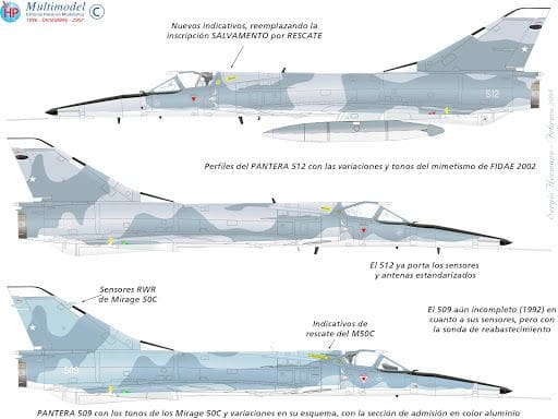 El primer Mirage Pantera de producción fue el 510, siendo modificados inicialmente todos los Mirage 50C, al estándar “Pantera”, siguiendo con los DC y FC. Siendo el último en modificarse el Mirage 50FC numeral 501.