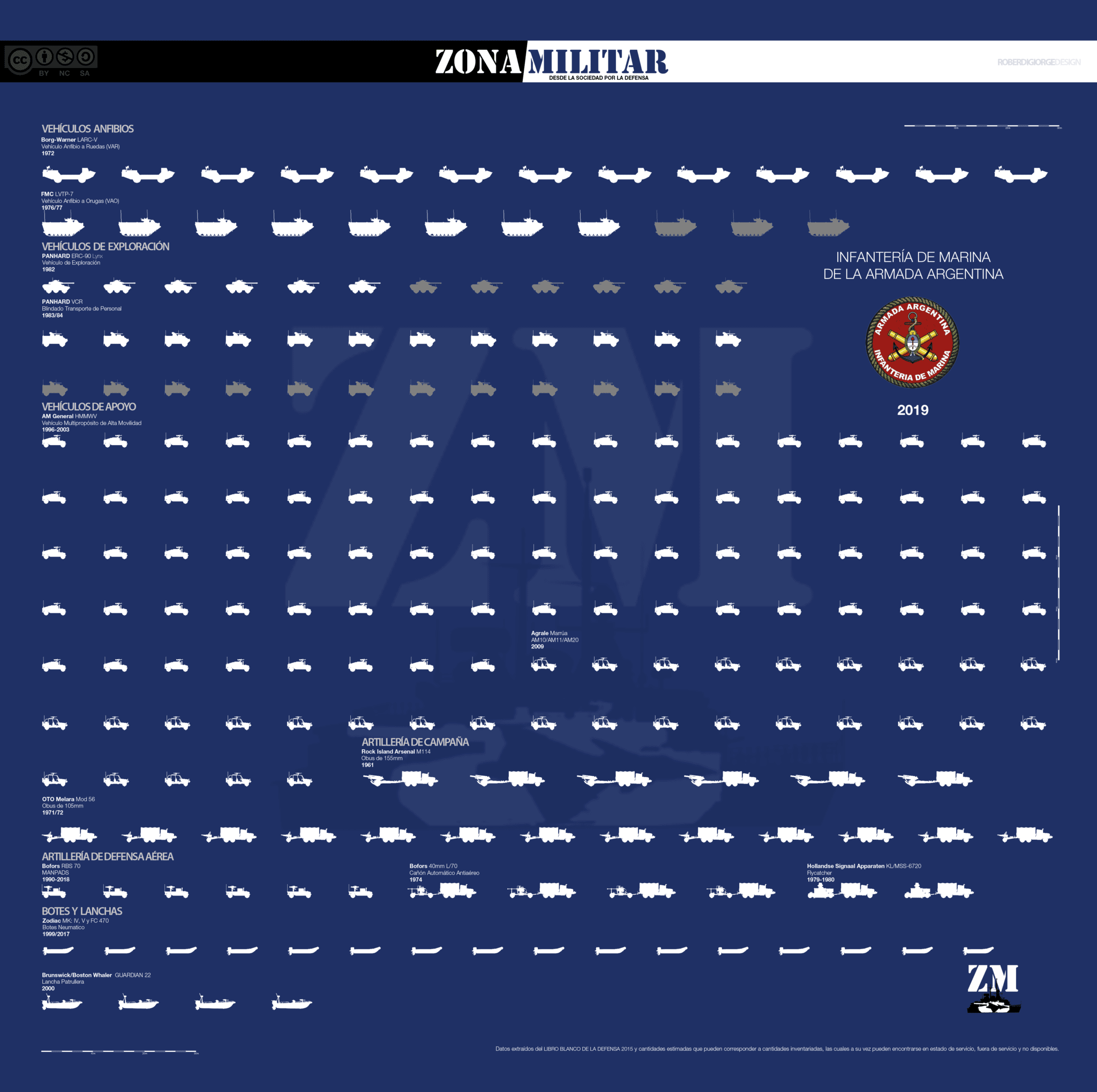 Sin embargo, el equipamiento individual tuvo su contrapartida. Los elementos de combate de mayor complejidad sufrieron bajas progresivas o imposibilidad de reemplazos. Un caso central dado el peso de la misión anfibia de la Infantería de Marina, recae sobre el estado de los LVTP-7 (VAO). A partir del año 2009, la firma Mecatrol comenzó tareas de repotenciamiento del sistema de armas con el fin de alargar su vida útil. De los 11 sistemas disponibles en la Armada, solo 8 lograron modernizarse, siendo esta cantidad insuficiente para las proyecciones que tiene esta fuerza.