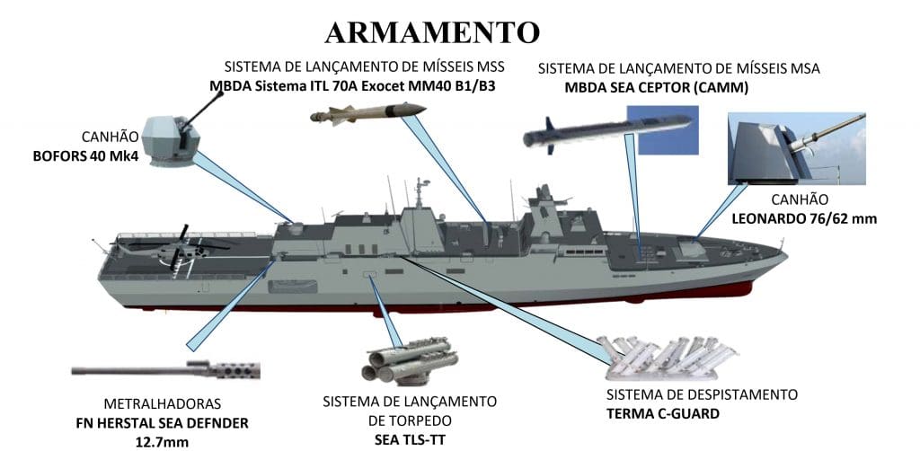 Thyssenkrupp suministrará la tecnología naval de su probada plataforma de construcción de barcos de defensa. La plataforma de referencia es la familia Meko A100, que recibirá modificaciones para adaptarse a los requisitos de la Armada brasileña.