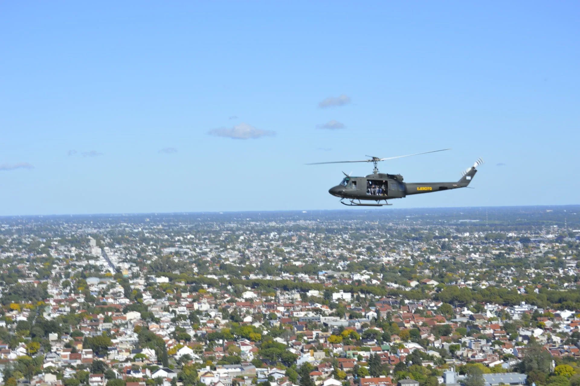 Bajo estrictas medidas de seguridad, tanto en las maquinas como en las tripulaciones, se dispusieron 2 aeronaves UH-1H Huey II para realizar un vuelo de unos 45 minutos de observación a unos 200 metros que pasó por San Fernando, la ribera hasta La Boca, de allí hasta el Mercado Central, luego hacia el Aeropuerto El Palomar para regresar a origen.