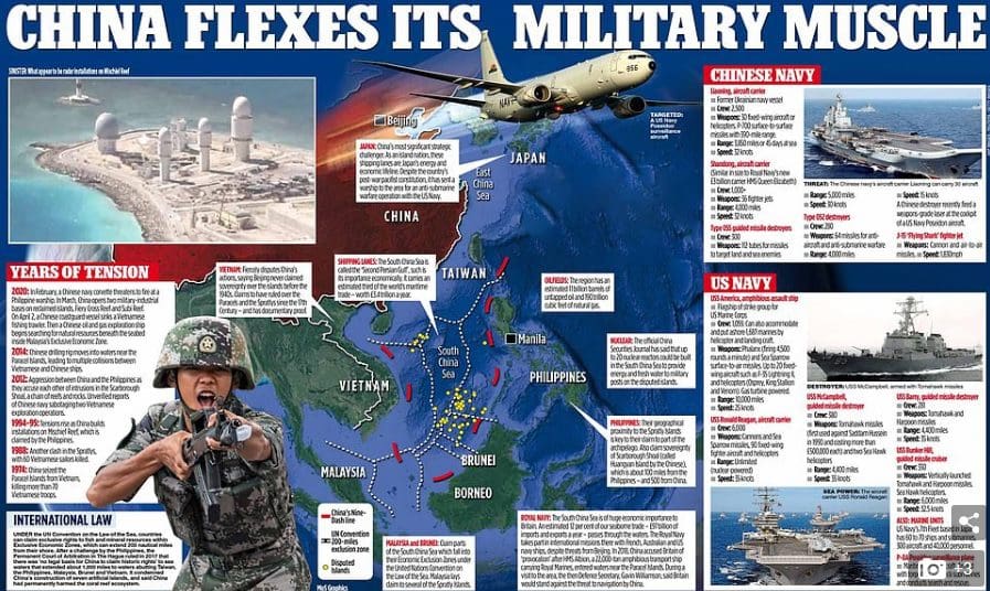 Mientras el mundo se encuentra absorto en la lucha contra el coronavirus, varios medios han culpado a China de estar “mostrando músculo” mediante el despliegue de sus fuerzas armadas. Los movimientos militares de portaaviones y buques de guerra en la zona han provocado una respuesta inmediata por parte del presidente de los Estados Unidos, Donald Trump, quien viene denunciado desde hace tiempo, que Beijing ha estado ocupando zonas con sigilo en clara violación del derecho internacional.