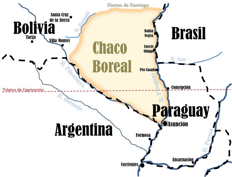 El Chaco Seco, es un desierto árido, revestido por monte bajo y espinoso, en la temporada de lluvia estival, los escasos y maltrechos caminos se transforman en un lodazal infranqueable, en la estación seca, el fino y penetrante polvo queda flotando en el ambiente como nubes, que afecta principalmente los pulmones y los filtros de aires de todo vehículo motorizado, habitada escasamente por pequeñas tribus de aborígenes, esta región era controlada mayormente por los bolivianos que habían diagramado su penetración con una extensa red de fortines de oeste a este, los más adelantados se encontraban a 500km de sus bases en las sierras bolivianas y su objetivo era llegar hasta el rio Paraguay.
