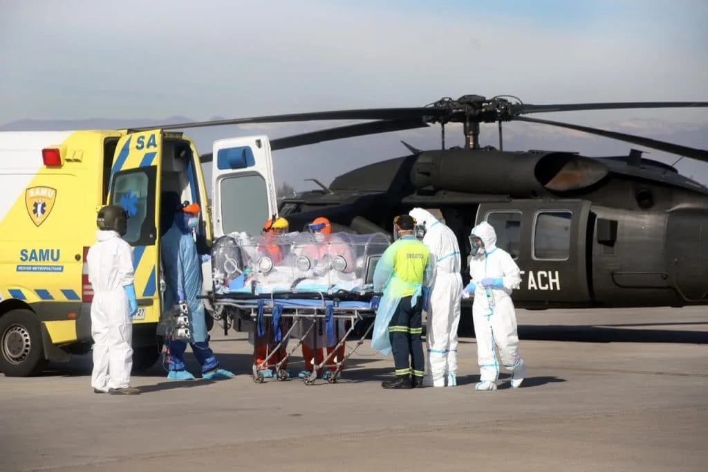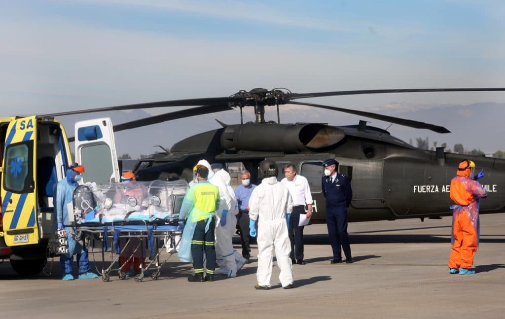 Los helicópteros UH-60 Black Hawk pertenecen al Grupo de Aviación 10, de la II Brigada Aérea asentada en el aeropuerto de Comodoro Arturo Merino Benítez, ubicado en Pudahuel. El traslado se realizó con la colaboración del SAMU en capsulas de aislamiento para evitar la propagación del virus.