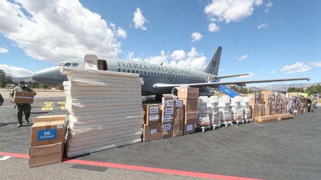 El Ministerio de Defensa Perú ha informado que, entre el 15 de marzo y 22 de junio, aeronaves pertenecientes a las Fuerzas Armadas Peruanas llevan transportadas 1.125 toneladas de insumos médicos.