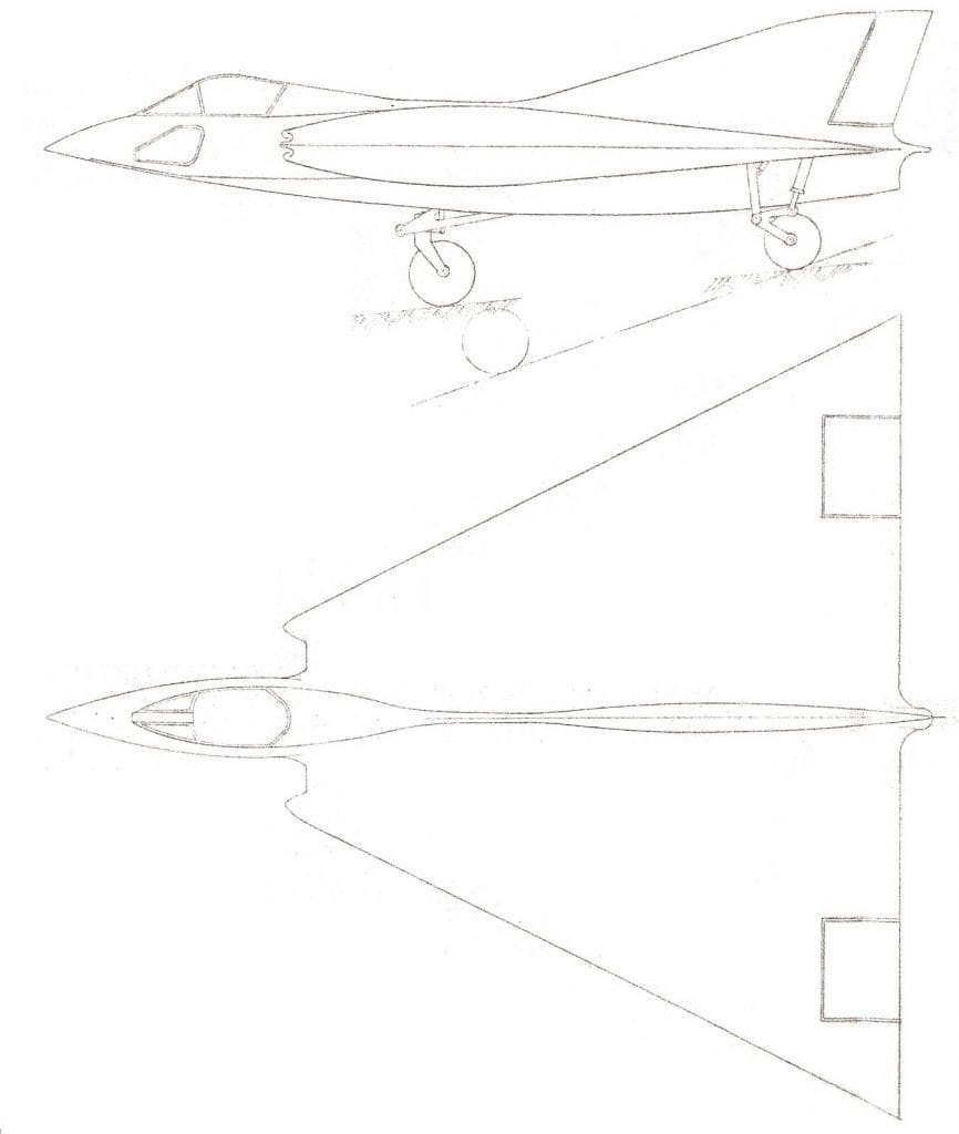 Se trataría de un avión de ala delta, con una flecha de 63,5 grados, sin diedro, sin alabeo, con una superficie alar de 48 metros cuadrados, con un 10% de espesor en el 40% de la cuerda, con deriva central y tren retráctil de accionamiento hidráulico.