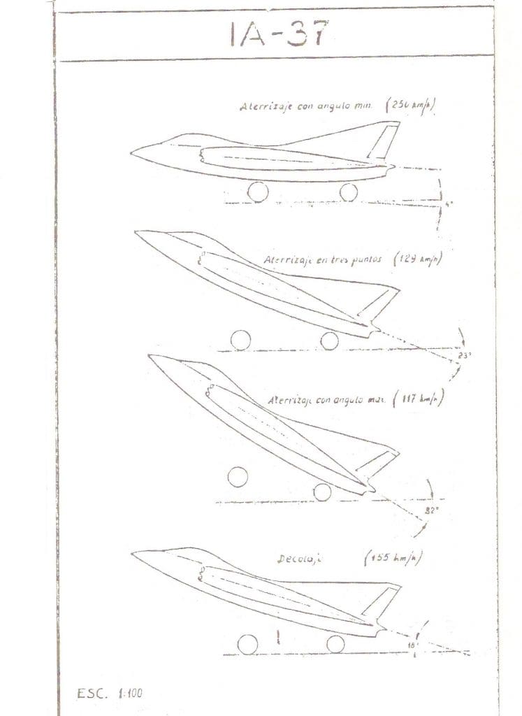 Por ende es recomendable obtener un tren de aterrizaje que tienda a colocar en tierra al aparato en esos ángulos, con el objeto de disminuir a carrera de despegue y aterrizaje. Como ejemplo mencionamos que en el informe se afirma que la carrera de despegue del I.Ae-33 Pulqui II era de 600 metros, en tanto que la proyectada para el IA-37 era de 307 metros.