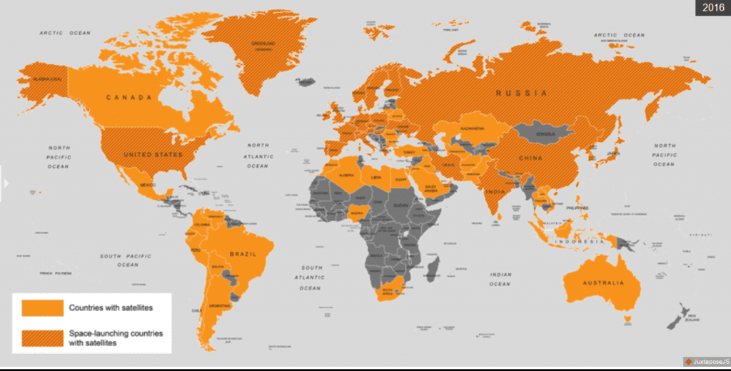 Pero en el escenario del dominio espacial hay otros actores importantes. Si bien, hay varios países que poseen la tecnología para desarrollar satélites, solo 13 países poseen la capacidad de desarrollar y lanzar satélites: EE UU, Italia, Francia, Japón, India, Reino Unido, Ucrania, China, Rusia, Israel, Irán, Corea del Norte y Corea del Sur.
