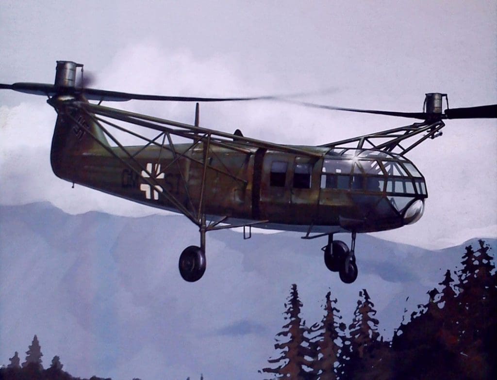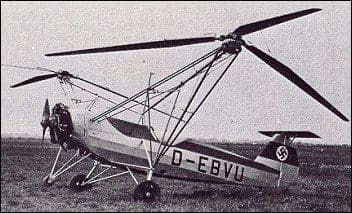En Alemania se desarrolla el Focke-Wulf Fw 61, también conocido como Focke-Achgelis Fa 61, que fue el primer helicóptero birrotor lado a lado, no engranados y pulverizo todas las marcas de ese tipo de aeronaves de su tiempo, (Es particularmente recordado por haber sido volado con la aviadora Hanna Reitsch a los mandos, en Berlín en 1937). –