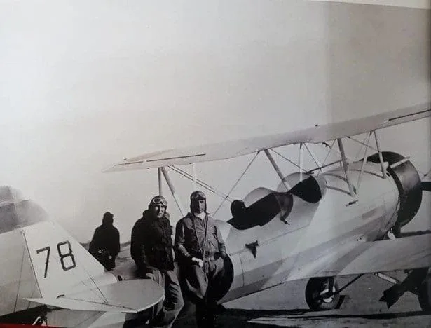Pilotos bolivianos junto a un Curtiss Wright C14R Osprey (Museo Aeroespacial Fuerza Aérea Boliviana)