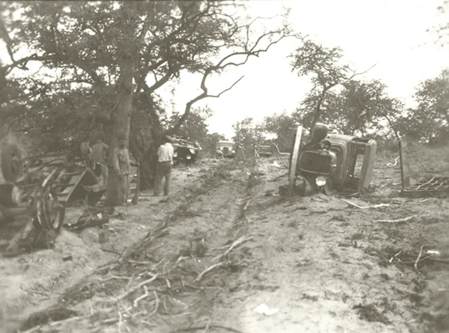 Columna de camiones bolivianos en retirada bombardeados por la Aviación Paraguaya (Archivo Víctor Meden)