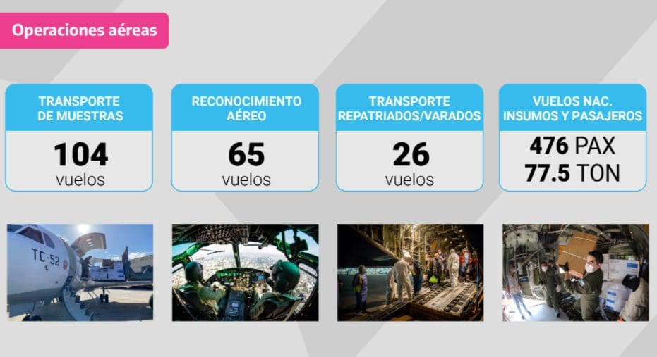 Nuevamente el Ministerio de Defensa publicó el resumen semanal de la Operación General Belgrano, que mediante el empleo del instrumento militar y las Fuerzas Armadas, tiene a cargo la tarea de poner a disposición todos los recursos disponibles y capacidades para atender la emergencia provocada por el COVID-19.