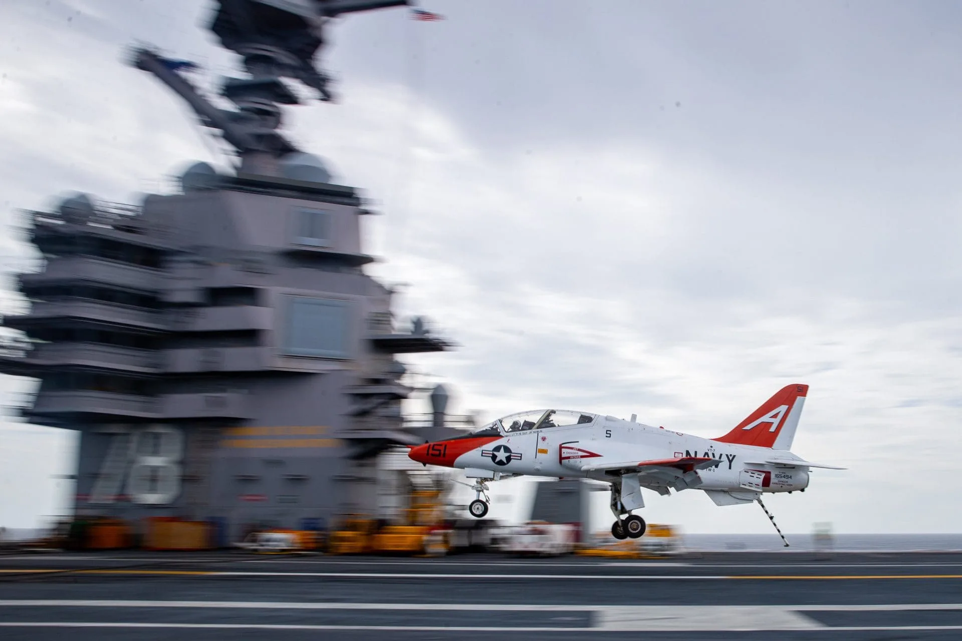 Futuros aviadores navales y marines se encuentran realizando la etapa de calificación abordo del USS Gerald R. Ford CVN-78, el último portaaviones incorporado por la US Navy. La actividad, realizada en el océano atlántico con los entrenadores avanzados Boeing T-45C Goshawk, corresponde a la fase final de formación previo a la entrega de las alas de oro, distintivo que los identificará como aviadores navales. Para obtenerlas y convertirse en “Tailhookers”, los estudiantes deberán completar cuatro toque-y-motor así como 10 apontajes exitosos.