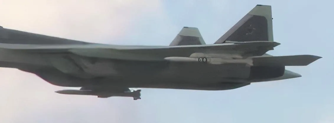 El video del Centro Estatal de Ensayos en Vuelo 929° V.P. Chkalov, también mostró un diagrama con variantes de las suspensiones de armamento aire-aire del Su-57. El Su-57 tiene 10 pilones de almacenamiento de armamento, incluidos cuatro dentro de dos grandes bodegas de armamento internas en el fuselaje que están dispuestas en tándem. Cada bodega puede acomodar dos misiles, o bombas, de hasta 700 kg, cada uno transportado en unidades pesadas de eyección y lanzamiento UVKU-50.