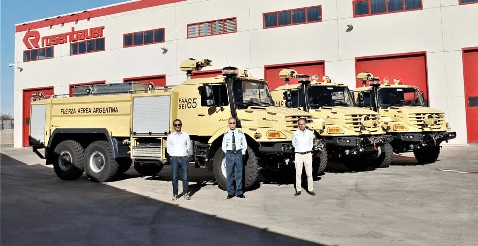 La Fuerza Aérea Argentina adquirió, entre el 7 y 8 de octubre, tres camiones hidrantes del tipo autobomba de la compañía austriaca Rosenbauer, marca líder en el segmento de este tipo de vehículos. Fueron recibidos en la sede de la compañía localizada en su planta de Linares, Andalucía, España.