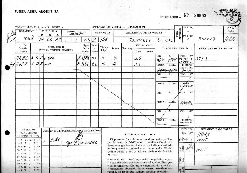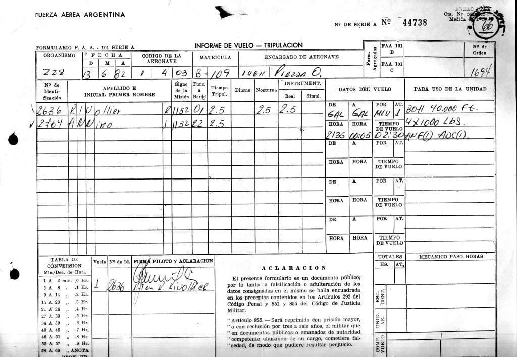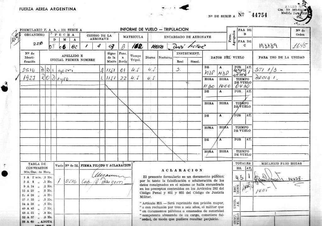 - B – 105, Negro 1: Mayor Jorge A. Chevalier y Primer Teniente José N. Pagano Fernandez