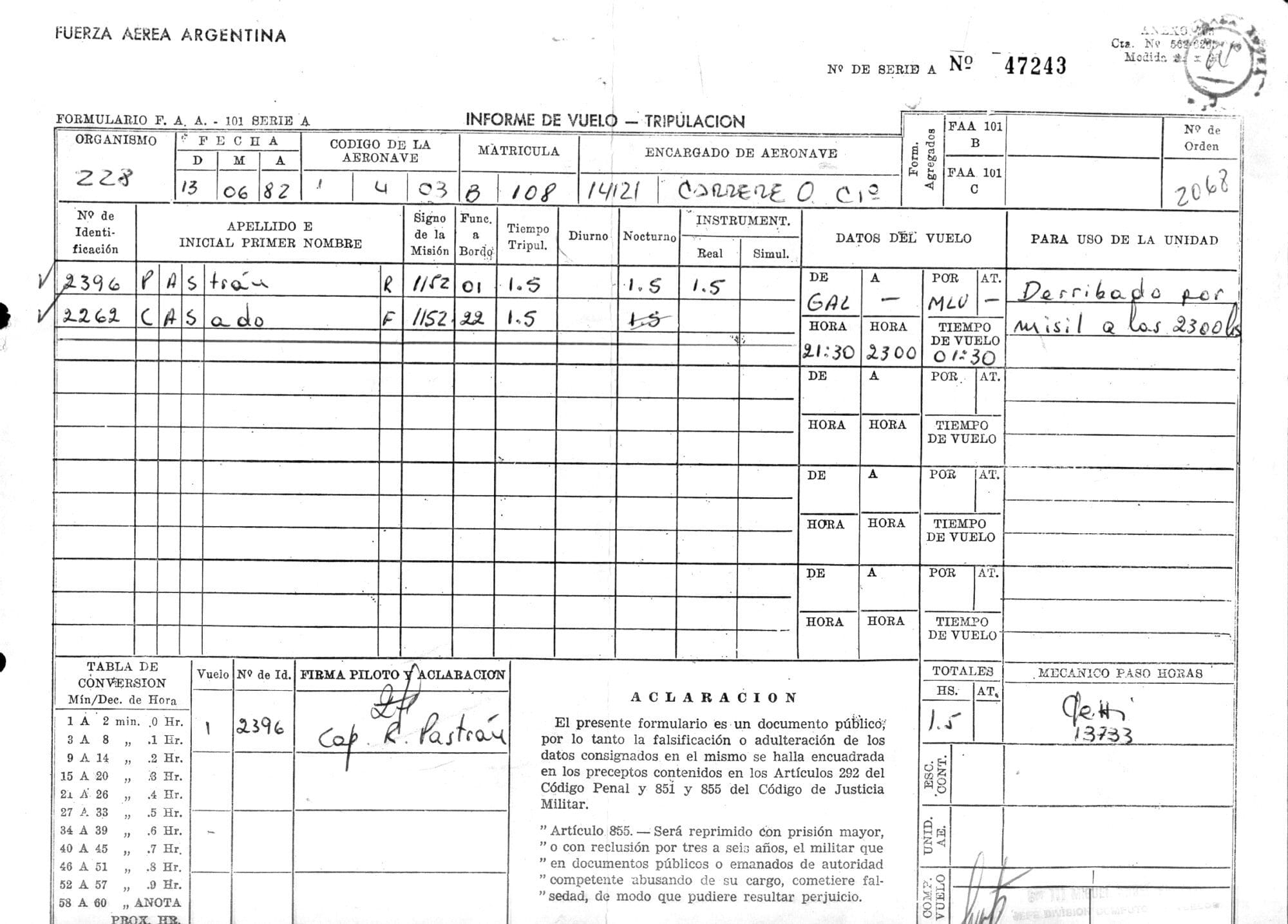 Formando parte de la Tripulación se desempeñaba como Oficial de Control Aéreo Táctico, el Comodoro Arturo “DURO “Enrique Pereyra, manteniendo enlace constante con la escuadrilla, hasta su llegada y ubicación del objetivo e informaba a la FAS la secuencia de los acontecimientos.