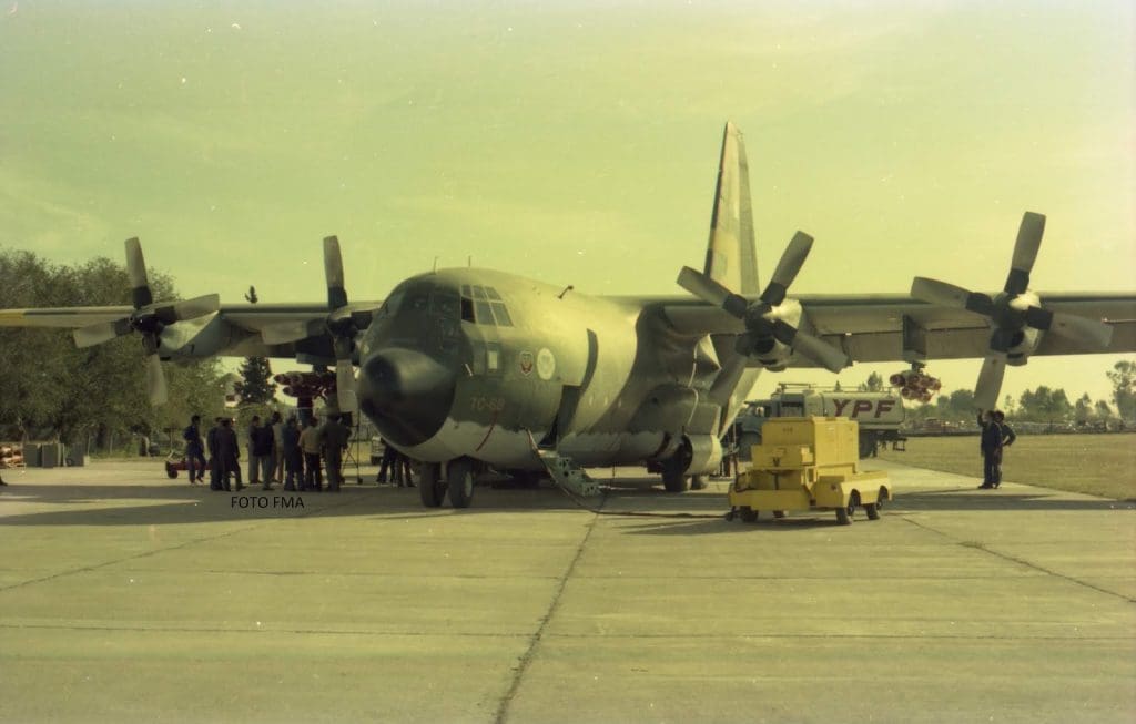 Se trataba del avión Hércules C-130, matrícula TC-68 de la I Brigada Aérea con asiento en El Palomar, cuyo acondicionamiento como bombardero se llevó a cabo en el más estricto secreto después del 20 de mayo, pues se trataba de una nueva arma que la Argentina pensaba utilizar para dañar a la Task Force en misiones de largo alcance de interdicción aérea.