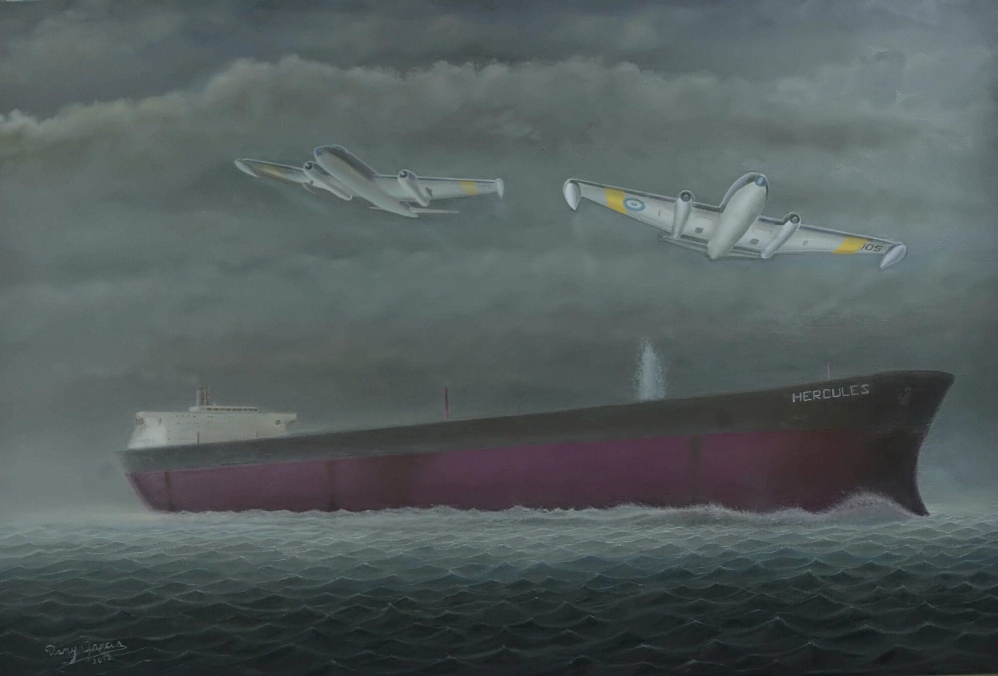 El día 8 de junio, el escuadrón Canberra tendría su revancha contra un objetivo aeronaval. El 8 de junio de 1982, Cerca de las 12.15, el súper tanque “Hércules”, un gigantesco barco cisterna norteamericano de 220.000 toneladas de desplazamiento, 375 metros de eslora, una manga de 70 metros y 18 metros de calado navegaba hacia el Cabo de Hornos proveniente de la costa este de los EE.UU. Según publicaciones de la época en distintos medios, “la gigantesca embarcación había hecho escala en las islas Vírgenes, en pleno mar Caribe, donde se detuvo a descargar sus tanques de petróleo en las refinerías Amerada Hess.