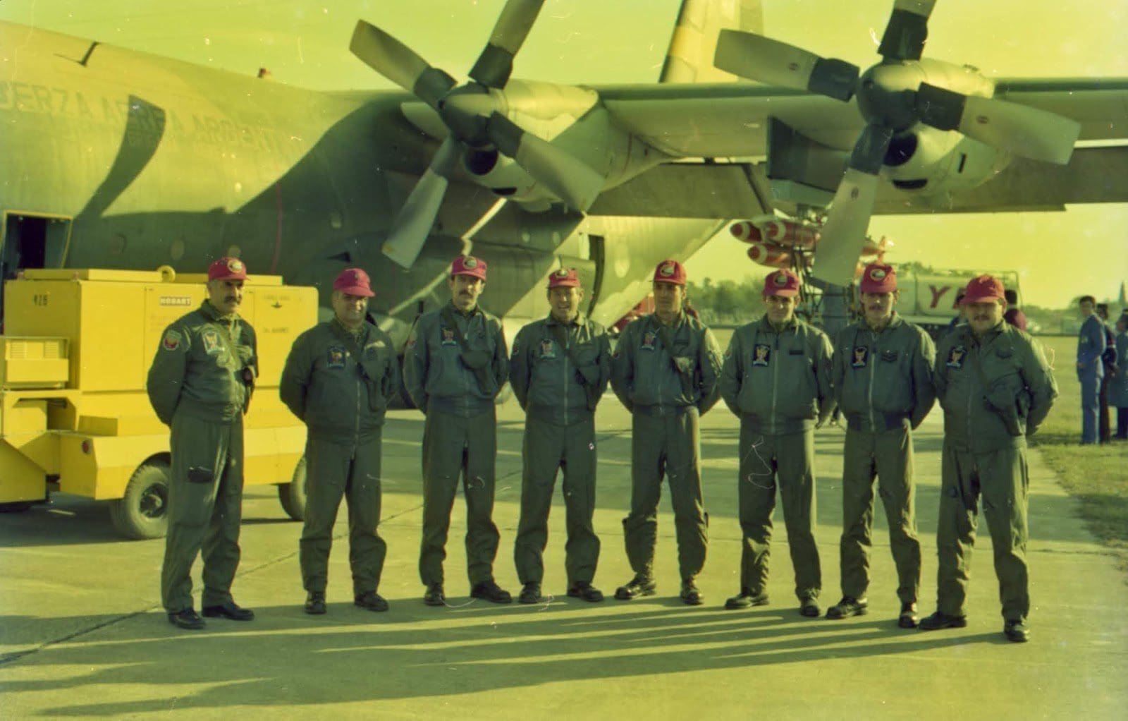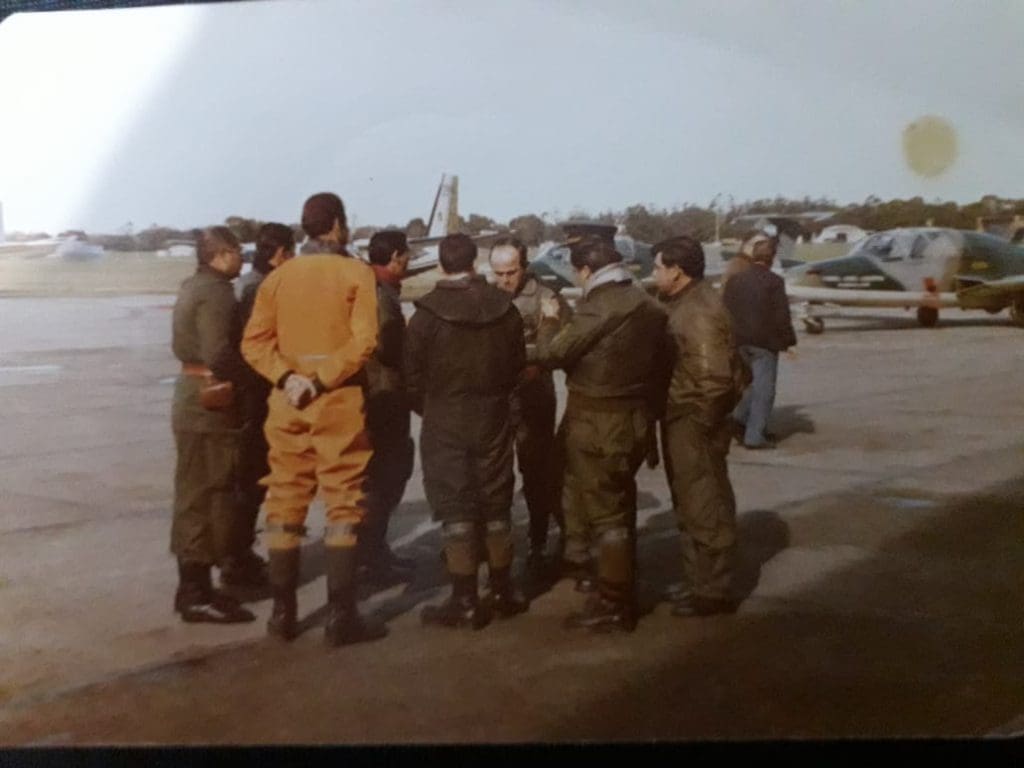 De izq a der: Navegador (Primer Teniente Daghero), Piloto Teniente Fernando MILLE y SP PIAZZA, en un pernocte en la VI Brigada Aerea, año 1991. Foto: Biguá vía Foro ZM