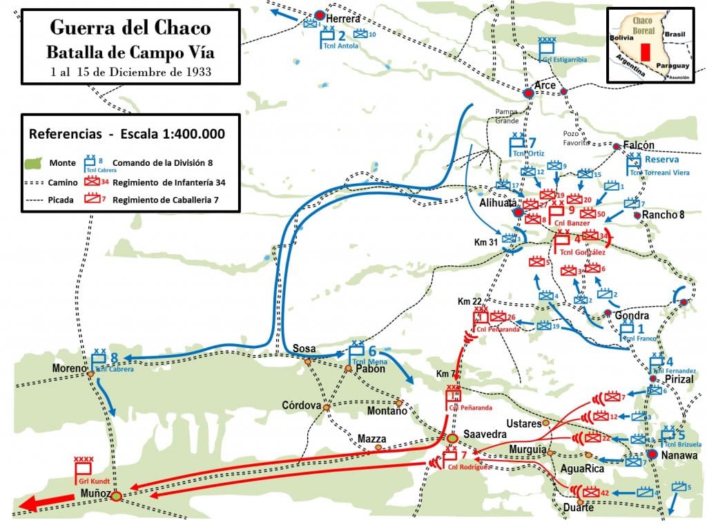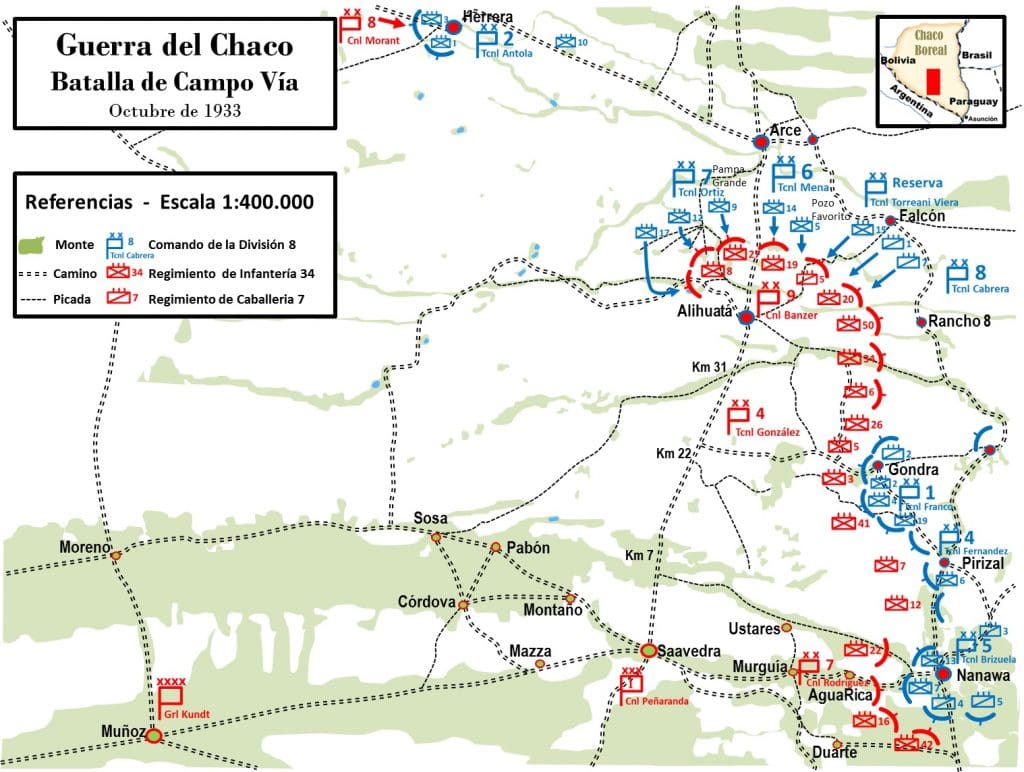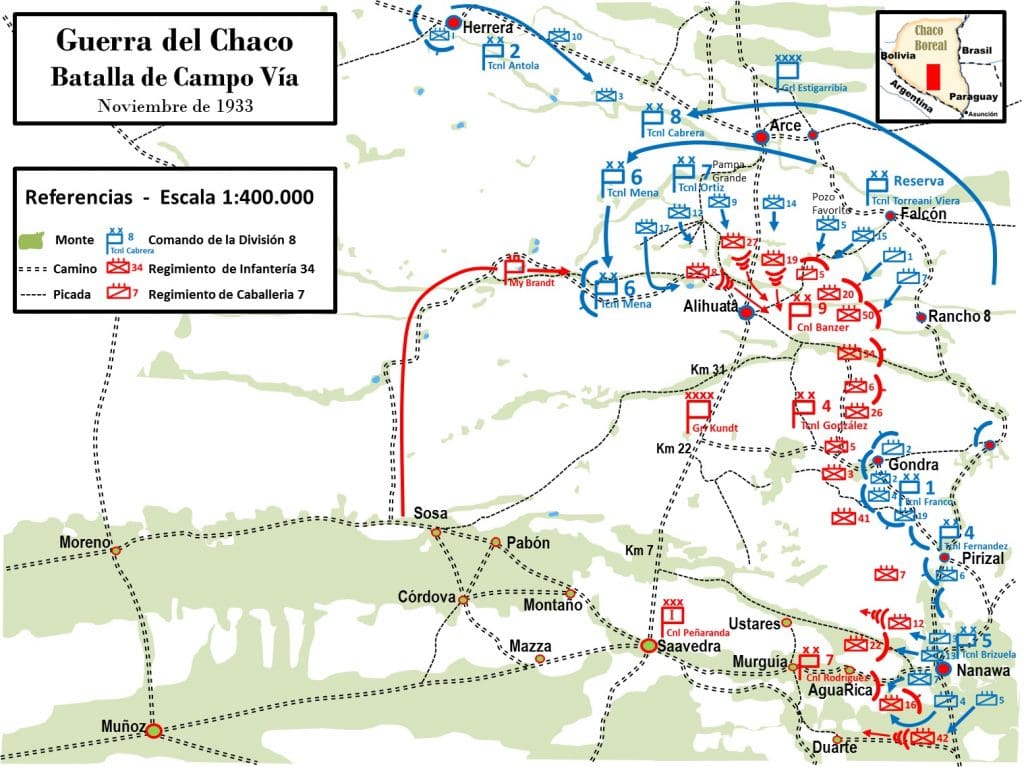En septiembre de 1933 se habían librado las Batallas de Pampa Grande y Pozo Favorito en proximidades de Arce, éxito que dio confianza a Estigarribia para preparar una gran batalla de emvolvimiento.