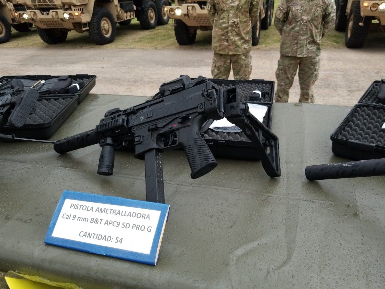 Según por lo que se pudo apreciar en la presentación realizada por la Dirección de Arsenales, todas las APC9 PRO G incorporan supresor B&T QD SMG/PDS así como miras de punto rojo Aimpoint Micro T-2, contando con sus respectivos estuches, accesorios y kit de herramientas.