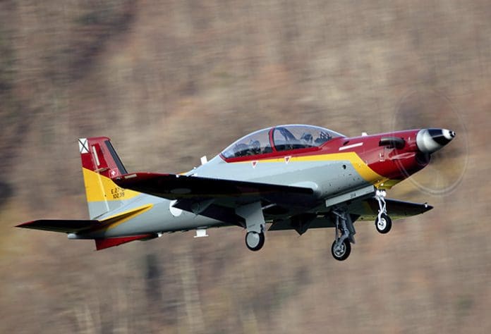 El fabricante de aviones suizo Pilatus completó con éxito el vuelo inaugural del primer entrenador de turbopropulsores PC-21 para la Fuerza Aérea Española.