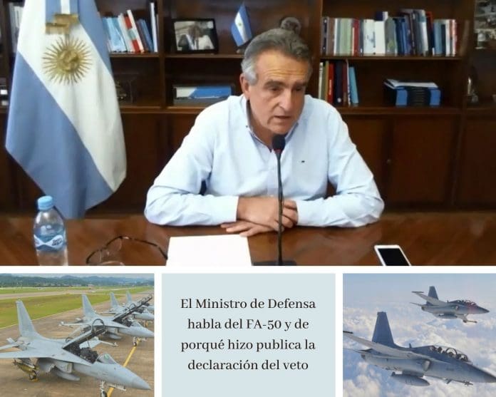 Las negociaciones para la adquisición del caza ligero FA-50 de la compañía de Corea del Sur KAI como caza complementario para la FAA fueron iniciadas por la anterior gestión de Oscar Aguad. Sobre esto, el actual jefe de la cartera afirma que cuando él asumió el cargo, la compañía se comunicó con el embajador argentino en Corea del Sur para reactivar las negociaciones. Sin embargo, el Ministro manifestó que ya se estaba al tanto de los componentes ingleses en el FA-50 y notificó a sus negociadores que eso “iba a ser un impedimento”.