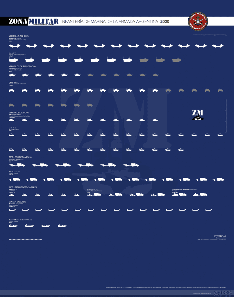 En esta oportunidad compartimos con la comunidad la infografía sobre las capacidades materiales de la Infantería de Marina dependiente de la Armada Argentina durante el 2020, mencionando los medios con los que cuenta la fuerza.