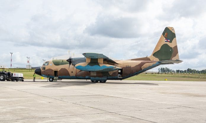 La aeronave, matricula FAU 594, partió desde la Base Aérea General Cesáreo Berisso, donde opera el Escuadrón Nº3, unidad que incorporó los KC-130H provenientes del Ejercito del Aire Español.