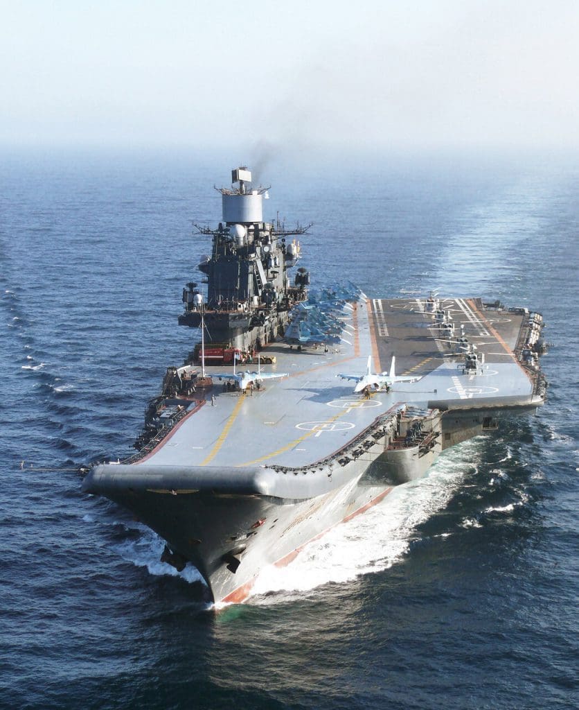 El único portaaviones ruso ha tenido un pasado colorido, por decir lo menos. Ha tenido tres nombres, primero fue bautizado como Riga, luego en 1982 Leonid Brezhnev, Tbilisi en 1987 y finalmente bautizado como Almirante Kuznetsov (Héroe de la Unión Soviética en la 2da Guerra Mundial que llego a ser comandante en jefe de la armada soviética) entrando en servicio en 1991 pero debido a la desintegración de la URSS y pujas entre Rusia y Ucrania sobre su posesión el buque permaneció amarrado durante años antes de ser reactivado y no estuvo operativo hasta 1995 cuando finalmente fue desplegado en el Mediterráneo y actualmente forma parte de la Flota del Norte. Entre sus despliegues podemos destacar el infructuoso intento de rescate de la tripulación del submarino Kursk.