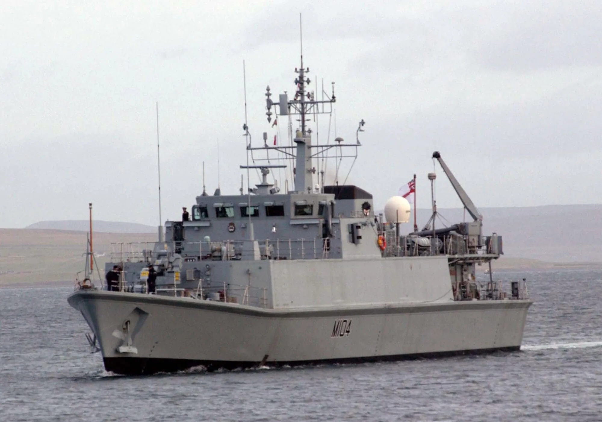 El HMS Walney (M104) es un buque especializado en la guerra de minas que operó durante 17 años en la Royal Navy. Posee una eslora de 52.5 metros y está motorizado por 2 propulsores diésel, dándole una velocidad de 13 nudos. A su vez, posee una pieza Oerlikon de 30 mm en su proa y afustes para ametralladoras 7.62 mm. Cuenta con el sistema de guerra de minas Sea Fox.