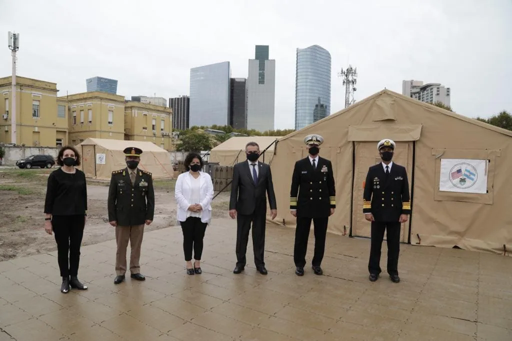 En el marco de la visita del Almte. Craig Faller a la Argentina, los EE.UU. realizó la donación de equipos y suministros médicos destinados a la lucha con el COVID-19 en el país. La presentación de uno de los tres Hospitales Móviles fue realizada en el Apostadero Naval de la Ciudad de Buenos Aires.