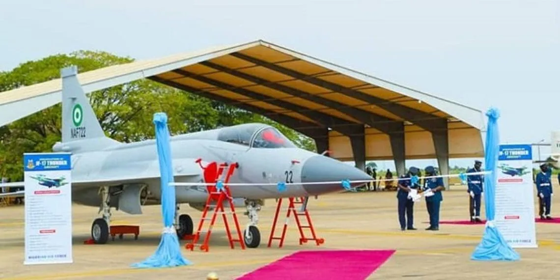 En el aeródromo de la Base Aérea de Makurdi, donde se celebró la ceremonia, se exhibió un avión JF-17 con número de serie NAF722.