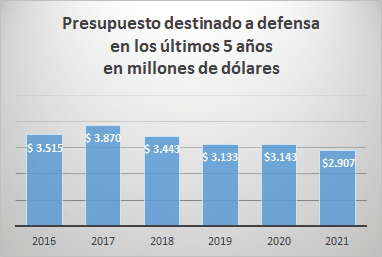 | Presupuesto de Defensa | 3143 MM USD | ||